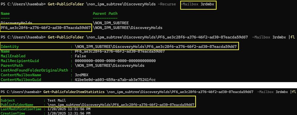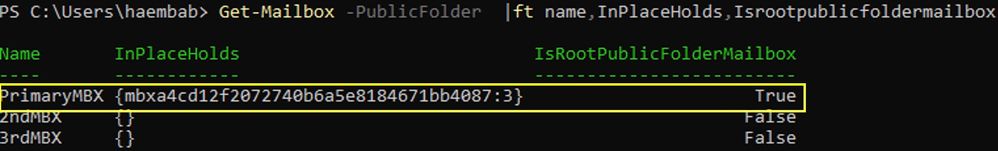 - The InPlaceholds parameter on the root or primary public folder mailbox will contain the policy identity. For details, refer to this article.