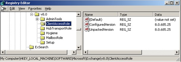 In situations where a server role is "partially" installed or an install has failed, comparisons are made in the registry under HKLM\Software\Microsoft\Exchange\v8.0\<name of role>. In this location is a set of registry values that give us a range of values describing the role state:
