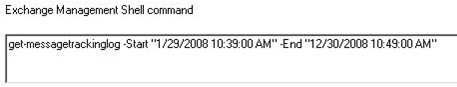 3. Copy the get-messagetrackinglog command syntax from the Exchange Management Shell command field:
