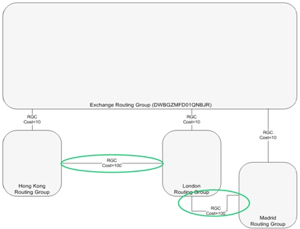 - When legacy Exchange has to route a message to the Exchange 2007 environment, or through it, it will pick the least cost route based on the legacy RGC costs. It will never know anything about the AD topology. For this reason, you want to consider your legacy connector costs carefully. The current version of the new-RoutingGroupConnector task costs new connectors at 1 by default. This may be too low if you're not ready to backbone over Exchange 2007.