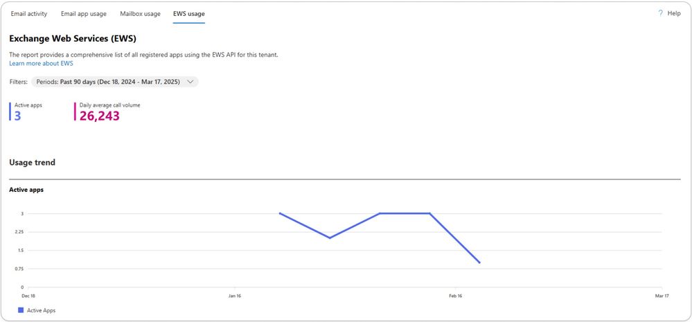 We are thrilled to announce the release of Exchange Web Services (EWS) Usage reports in the Microsoft 365 Admin Center—a feature designed to simplify and enhance administrative oversight for tenants in their effort to remove EWS dependencies. This marks another milestone in our commitment to providing actionable insights and tools for our administrators, ensuring they have everything they need to manage the retirement of EWS.
