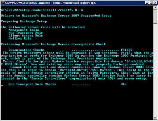 A while ago we told you about the setup prerequisite change in Exchange 2007 SP1 that allows setup to ignore unreachable domains and domains that do not have any domain controllers running a minimum of Windows 2003 SP1. That post is here: