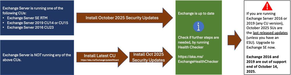 October 2025 SUs are the last publicly available SUs for Exchange Server 2016 and 2019. From this point forward, only customers who contacted their Microsoft Account Teams to get the Extended Security Update (ESU) for those versions will receive new SUs that we might release for Exchange 2016 and 2019, through April 2026.