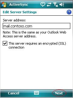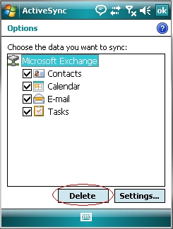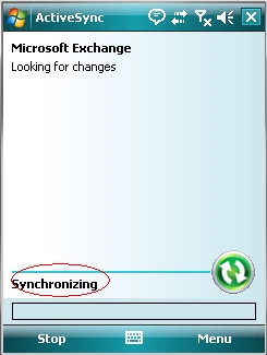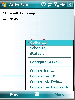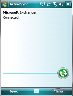 2. In ActiveSync select the Menu button at the bottom right corner.