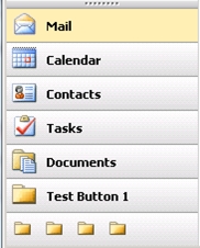 To make a custom button appear with a large icon plus text, you need to remove an existing button from the navigation bar. This can be achieved by using OWA segmentation. In the example below the "Public Folder" button has been removed, you could choose others.