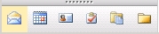 The answer is relatively simple: To preserve web UI usability the main navigation bar is limited to 6 large buttons. Additional buttons appear in an over flow bar as small icons with the text as an OWA tooltip (OWA tooltips appear as you hover over a button or feature). The OWA buttons take precedence over custom defined buttons. In Exchange Server 2007 SP1 there are 6 OWA buttons by default.