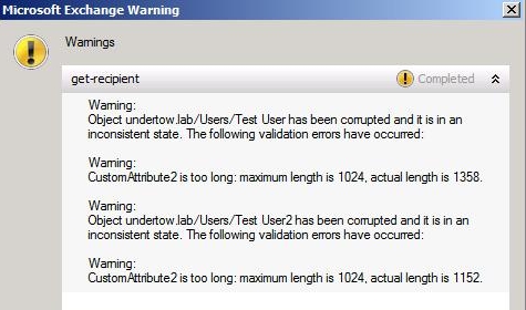 The inspiration for this post came from a real issue I troubleshoot within Exchange Escalations Support. Throughout this post, I will be referencing and providing examples based upon Exchange Custom Attribute 2 (e.g. extensionAttribute2). However a failure could occur on any attribute that exceeds the upper limit set by /SchemaPrep which I will detail later in this post.