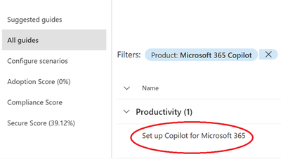 - Scroll down or filter guides by Product and select Set up Microsoft 365 Copilot.