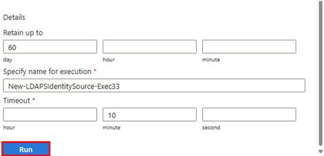 - Click the latest run execution that is applicable to your environment. In this case, New-LDAPSIdentitySource-Exec33.