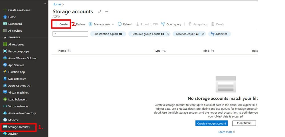 - In the left navigation pane, click “Storage accounts”;