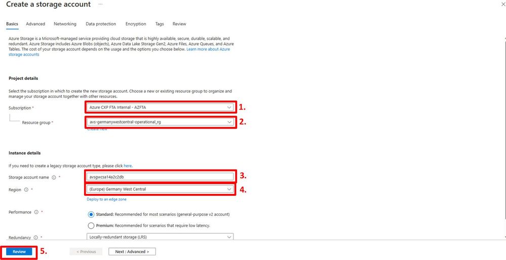 - In the list of storage accounts, select the storage account created in the previous step. In our scenario avsgwcsa14a2c2db;