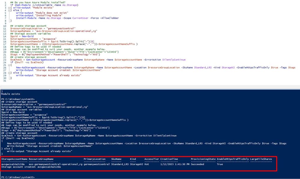 Write-Output "Storage account created: $storageAccountName"