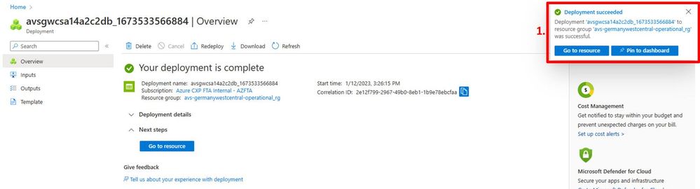 | One Azure VMware Solution Private Cloud called | avs-fta-gwc |
