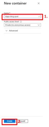 - In the “Name” field, type a descriptive name for the new container. In our scenario ldaps-blog-post.