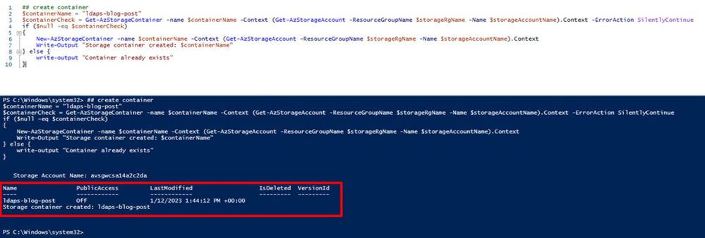 Write-Output "Storage container created: $containerName"