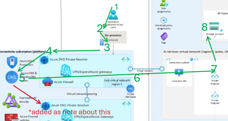 Now, let’s delve into scenario 01: I have grabbed the following snapshot from Azure AI Landing Zones and removed non-network Azure resources to focus only on private Network components,