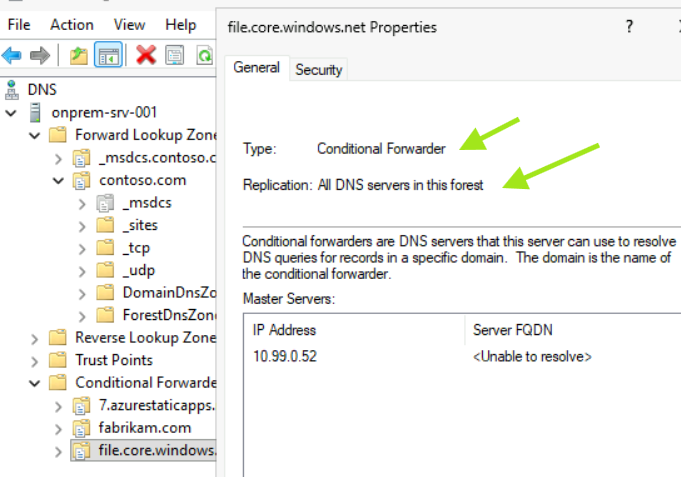 - Domain – DNS Conditional Forwarder configuration