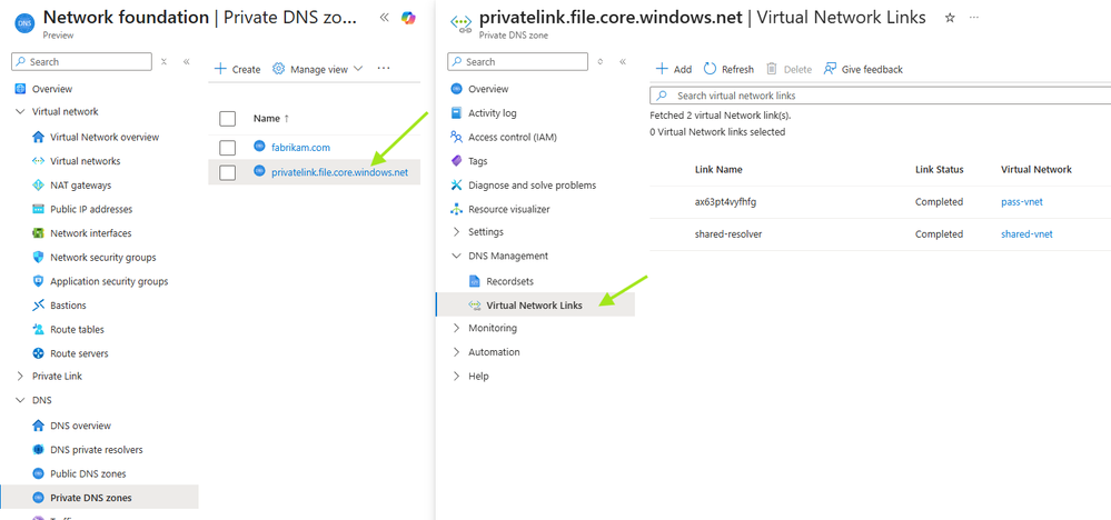 **Note: 1. Follow Prerequisites to deploy resources. 2. A common misconception is that VNet peering enables DNS resolution. In reality, private DNS zones are only accessible to VNets that are explicitly linked to them, peering provides connectivity, but not name resolution.