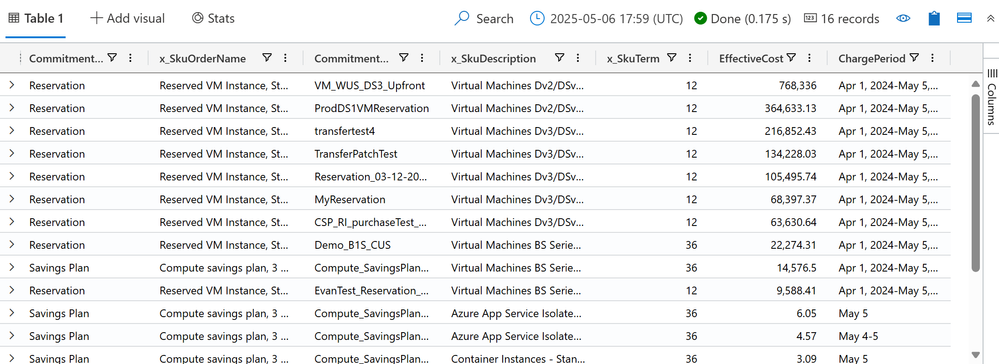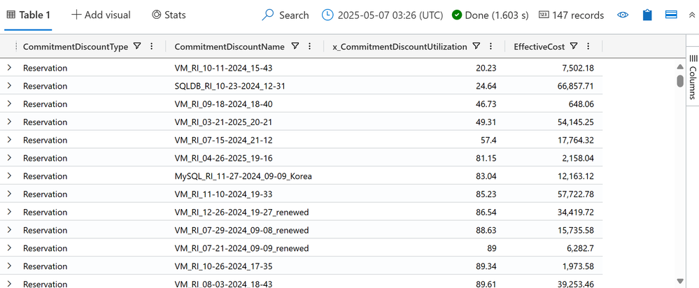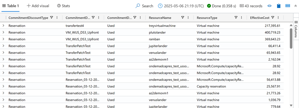 You may notice some rows where the ResourceName is the same as the CommitmentDiscountName column. These are the unused amounts.