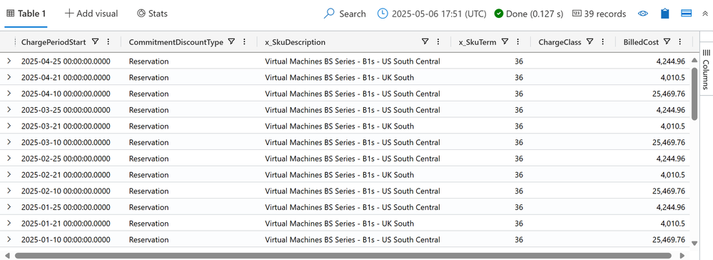 When CommitmentDiscountStatus is “Unused”, ResourceId and related columns refer to the commitment discount instance (not the order). Again, you’ll see $0 BilledCost, since that’s covered by the purchase, and EffectiveCost represents the amount that wasn’t covered by other usage. So, if you used a virtual machine for 18 hours, then the unused portion would be 6 hours since the commitment was for 24 hours.