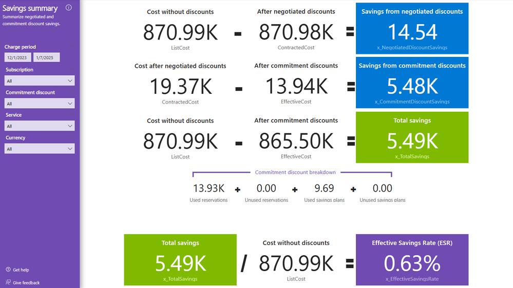 For a more directed walkthrough, the FinOps Foundation offers a free Introduction to FOCUS course. When you’re ready to dig into your own FOCUS data, check out the Power BI reports in the FinOps toolkit. These reports offer a great starting point that you can customize to meet your needs. And if you’re looking for more advanced analytics that can handle data at scale, check out FinOps hubs, which offer additional benefits, like pre-calculated savings for EA and MCA accounts.