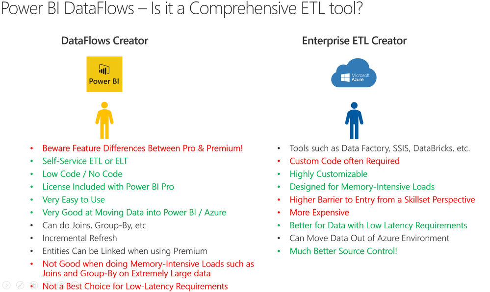 Differences between Power BI DataFlows and Enterprise ETL/ELT tools