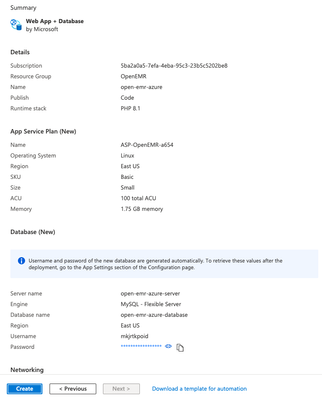 1. Complete the form (UPDATE- we are now using PHP 8.2 and OpenEMR 7.0.2) and click “Review and Create”