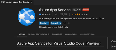 3. Ensure that the Azure App Service Extension is installed in Visual Studio Code