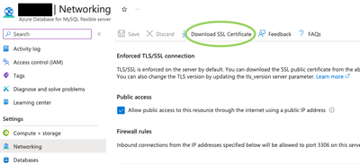 3. Select the “Networking” blade under the “Settings” section, and click “Download SSL Certificate”