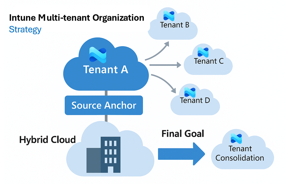 Organizations experiencing frequent mergers and acquisitions (M&A) often operate in a persistent multi-tenant environment. While Microsoft Intune does not support natively multi-tenant organization (MTO) management, companies must adopt a hybrid and transitional approach.