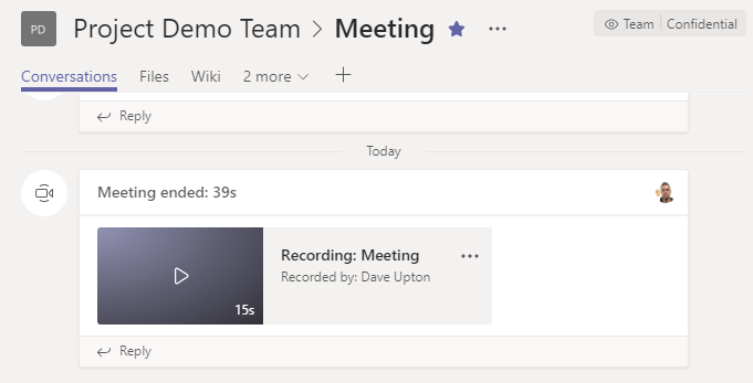 Recording made available in Team Channel