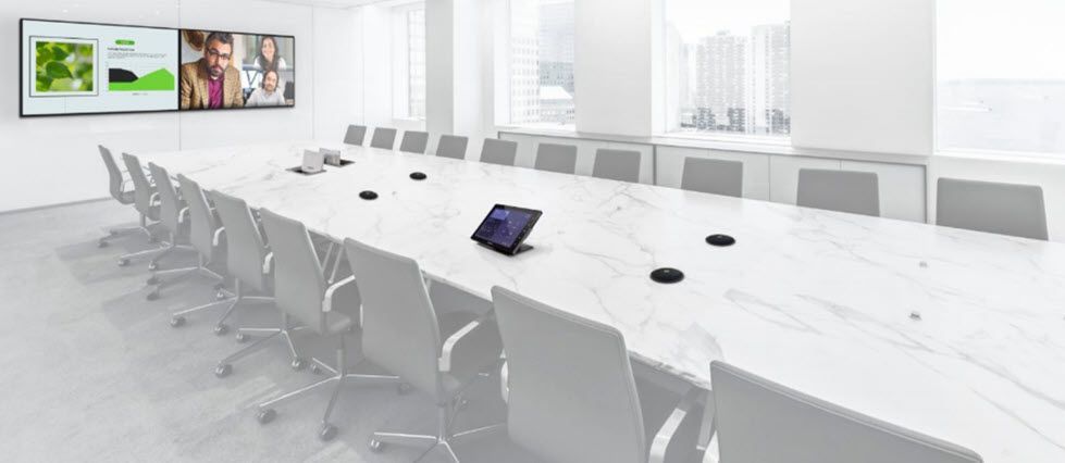 Employees will require to bring their laptops into the meeting room, plug them into an HDMI or wireless HDMI input system (such as Clickshare or AirMedia), and share the screen to address the prospectus. Considering the absence of a video camera and the fact that video is only available from an employee's laptop, this doesn't provide a pleasant experience.