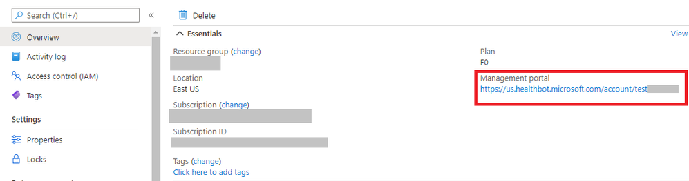 3. On successful deployment, Go To Resource. In the Overview tab, click on the Management portal link.