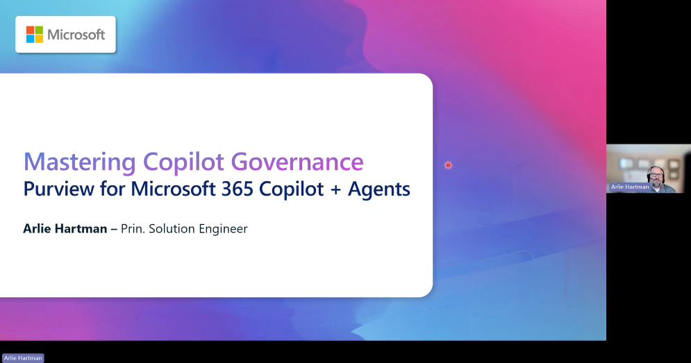 In our latest Mastering Copilot Governance webinar, we are joining by Principle Solution Engineer, Arlie Hartman, as we shifted focus Purview, where with great power comes the need for strong governance, especially when it comes to sensitive information and regulatory compliance.