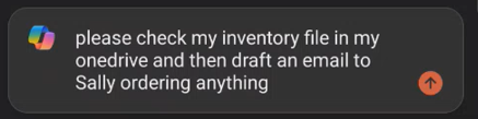 Next, in the demo, it’s shown that you could even draft the email in Outlook by simply asking Outlook to review the Inventory file and draft the email all in one step.