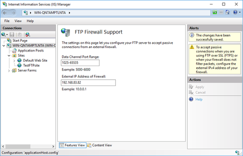 - IIS may not be configured to use passive mode FTP. There are two types of FTP connections: Active mode and passive mode. In active mode, the client opens a port. The server connects to this port for transferring data. In passive mode, the server opens a port. The client connects to this port to transfer data. In order to use passive mode, enter a port range and IP address in “IIS > Server name > FTP Firewall Support” page