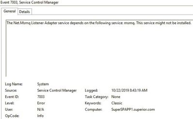 The Net.Msmq Listener Adapter service depends on the following service: msmq