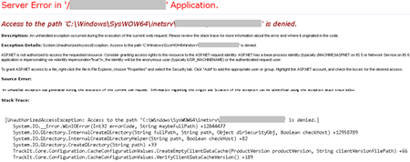 You may see “Access to the path is denied” error if the application is not able access to a path that is trying to read or write. This will show up as 401 Unauthorized error in IIS logs.