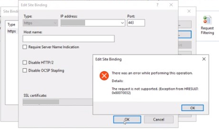 IIS uses bindings to determine where to redirect requests. These bindings can be secured (https – mostly on port 443) or unsecured (http – mostly on 80).