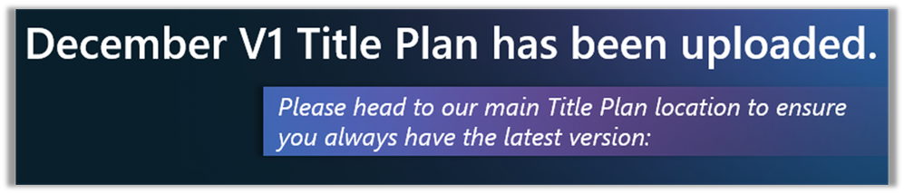 Don't forget to checkout bi-weekly updates made to the Title Plan, shared in its permanent location, linked above.