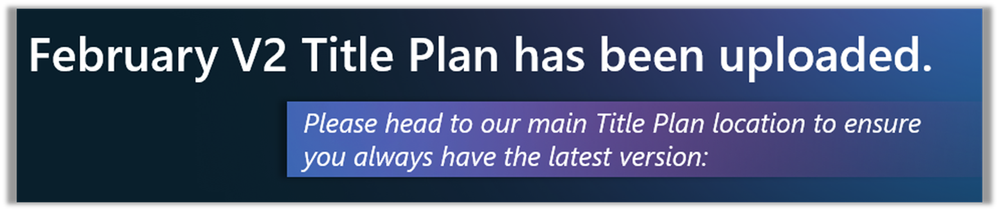 Bi-weekly updates to the Title Plan can be found in its permanent location, linked above.