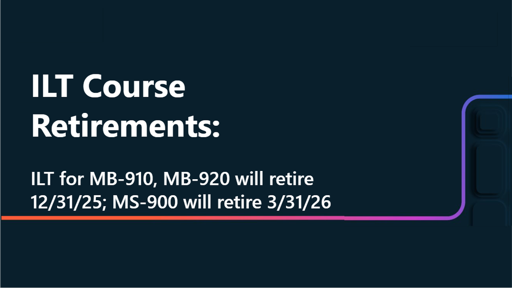 | MB-920T00: Introduction to Microsoft Dynamics 365 (ERP) | https://learn.microsoft.com/training/courses/mb-920t00 | December 31, 2025 |