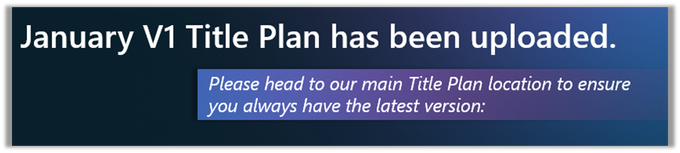Don't forget to checkout bi-weekly updates made to the Title Plan, shared in its permanent location, linked above.
