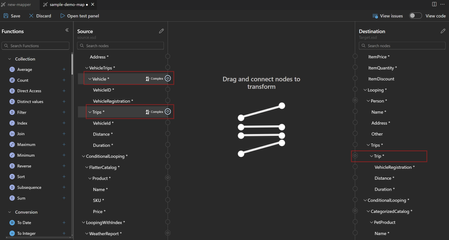 Thanks for this article! Just to be clear the DirectAccess function above is getting the VehicleRegistration at the Index of the Vehicle loop that matches the index of the Trip loop as it goes through that loop. It's not somehow matching the VehicleID from Trips loop to the Vehicle loop. So this would require the Vehicle loop to have the same number or greater of items as the Trips loop. I think the DirectAccess function may help with want I'm trying to do, which is to take values from a loop in the source schema and flatten them to be used in the destination schema. Maybe to either take the first trip from a loop or the trip info for a specific VehicleID (to use the example here). I've been trying to make something like this work in the Data Mapper and haven't been successful yet. Any guidance would be most appreciated. These articles discussing the Data Mapper capabilities and functions are great. Keep them coming!