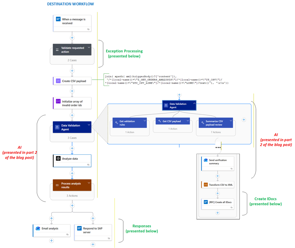 Note on AI-assisted development Most of the workflow “glue” in this post—XPath, JavaScript snippets, and Logic Apps expressions—was built with help from Copilot and the AI assistant in the designer (see Get AI-assisted help for Standard workflows - Azure Logic Apps | Microsoft Learn). In my experience, this is exactly where AI assistance pays off: generating correct scaffolding quickly, then iterating based on runtime behavior. I’ve also included SAP ABAP snippets for the SAP-side counterpart. You don’t need advanced ABAP knowledge to follow along; the snippets are deliberately narrow and integration-focused. I include them because it’s hard to design robust integrations if you only understand one side of the contract. When you understand how SAP expects to receive data, how it signals errors, and where transactional boundaries actually are, you end up with cleaner workflows and fewer surprises. |