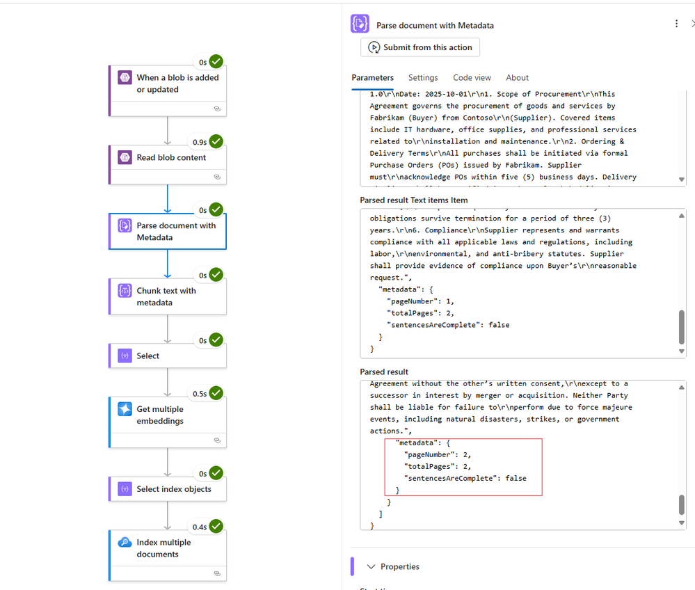 The new Parse document with metadata and Chunk text with metadata actions in Logic Apps bring powerful improvements to how you handle documents. Unlike the previously released parse and chunk actions, these new versions provide rich metadata alongside the text: