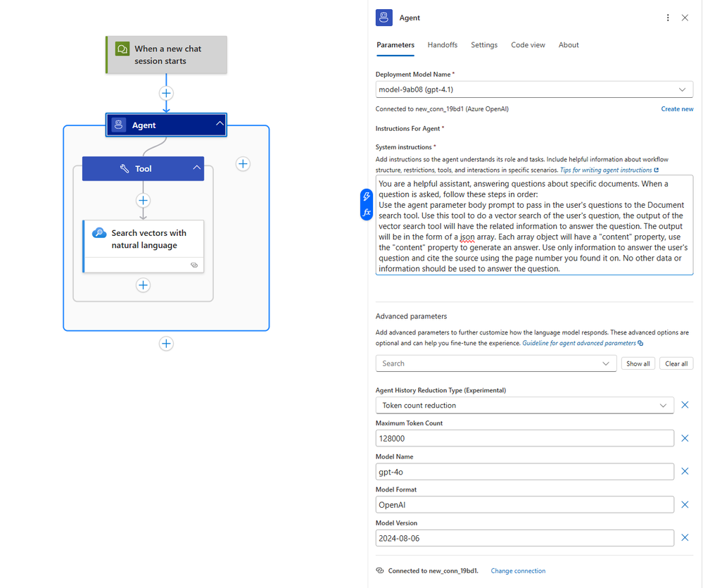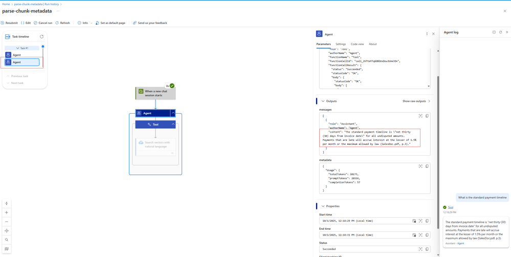 Once parsed and chunked with metadata, you can embed and index documents in Azure AI Search, and then use an Agent Loop in Logic Apps that calls Vector Search as a Tool to answer questions with precise, page-level references