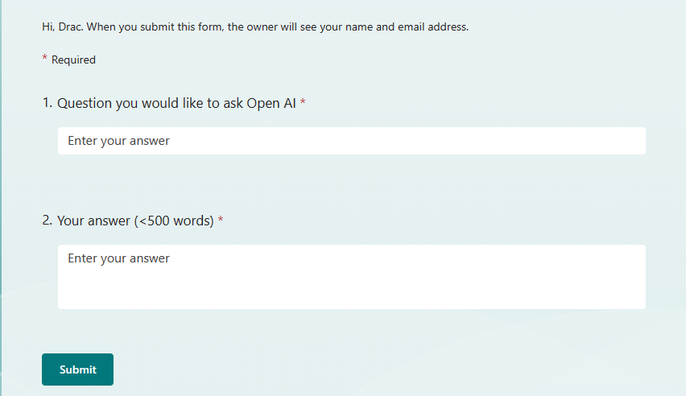- Microsoft Form of your own template.