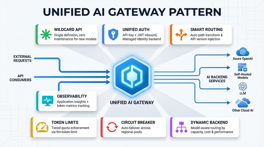 Note: The Unified AI Gateway described in this post is a customer-implemented design pattern built using Azure API Management policy extensibility.