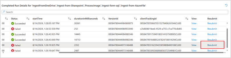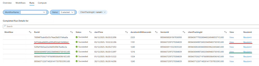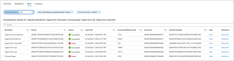 Another useful feature in the runs table is the ability to resubmit runs. This is particularly valuable when workflow failures are due to intermittent issues or downstream failures that resolve over time.